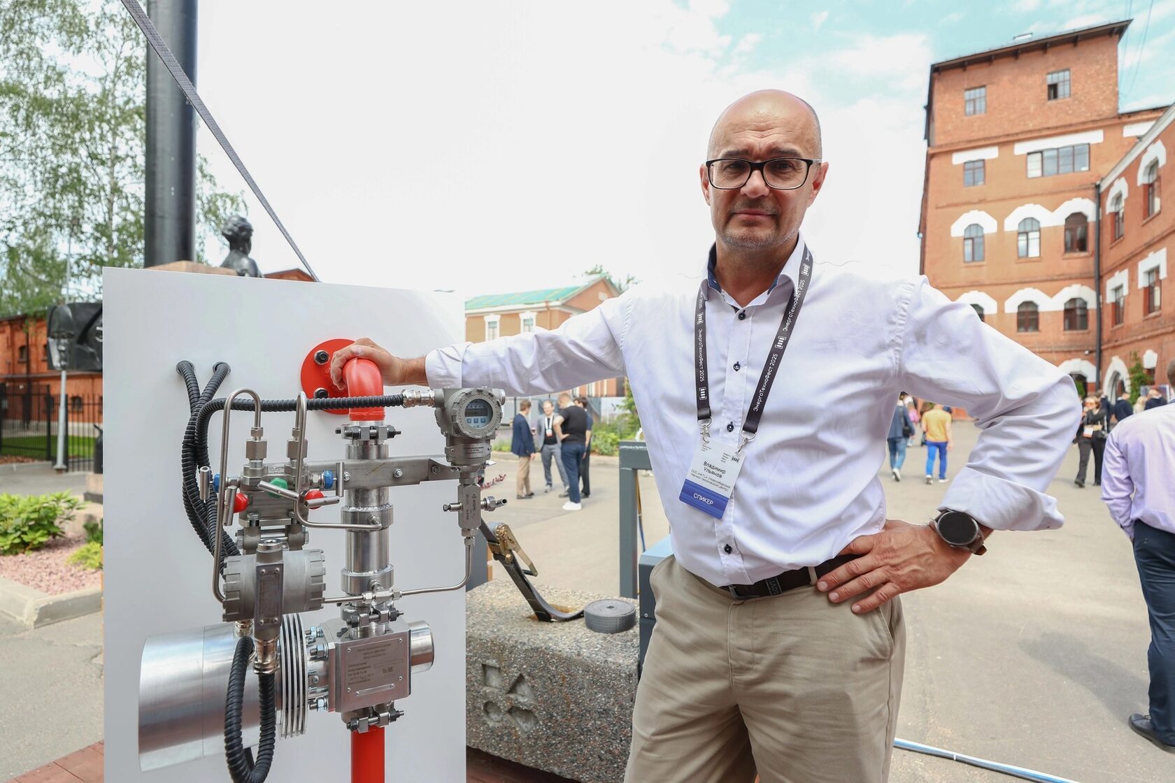 Владимир Николаевич Ульянов, генеральный директор ННТЦ представил новую разработку компании — Программно-аппаратный измерительный комплекс "Добыча" для применения в составе групповых замерных установок нового поколения на совместном стенде с "Инжиниринговым центром "Кронштадт".