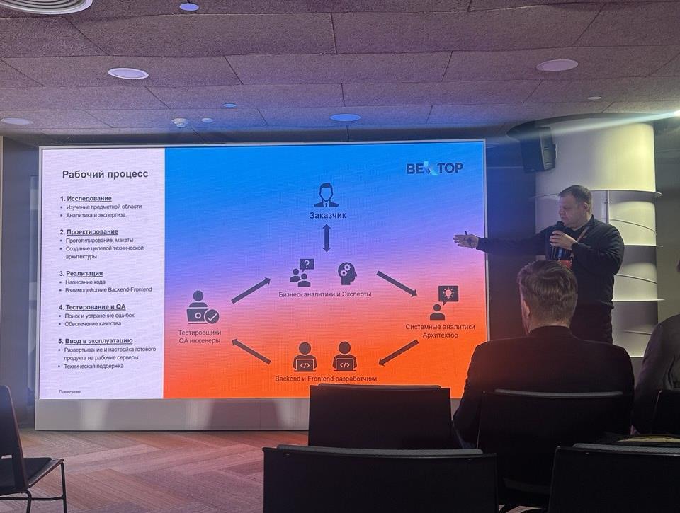 Кирилл Овчинников, директор по развитию бизнеса ННТЦ, представил систему ВЕКТОР в секции «Разработка российского индустриального ПО». Доклад был посвящен решению проблемы низкой эффективности процессов гидродинамического моделирования (ГДМ).